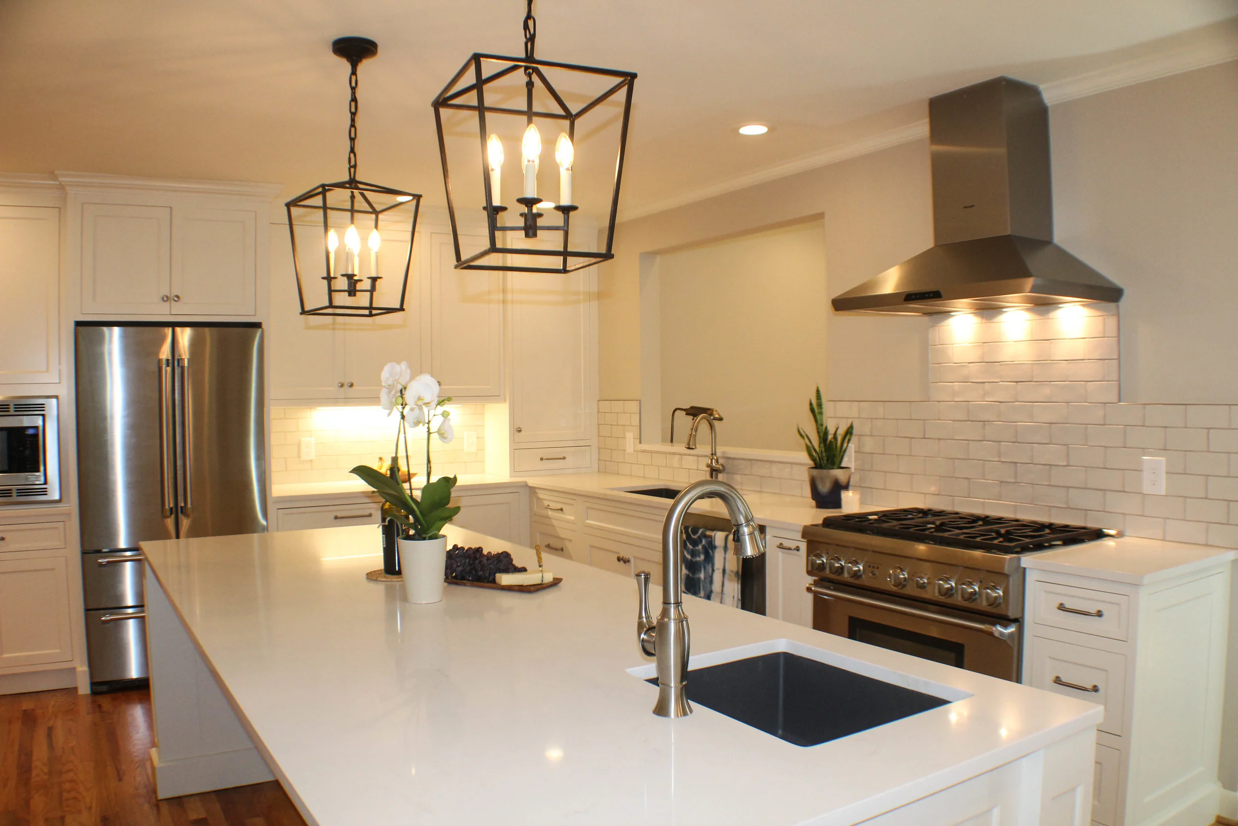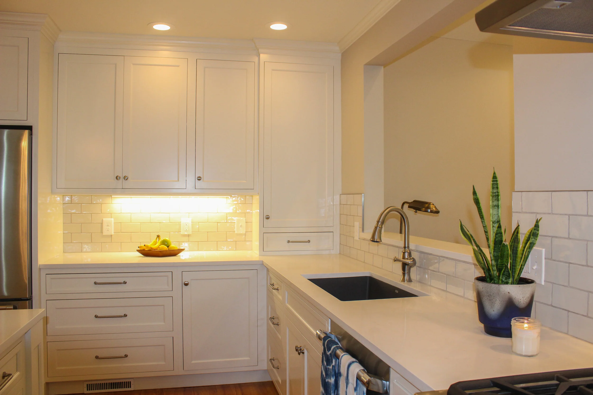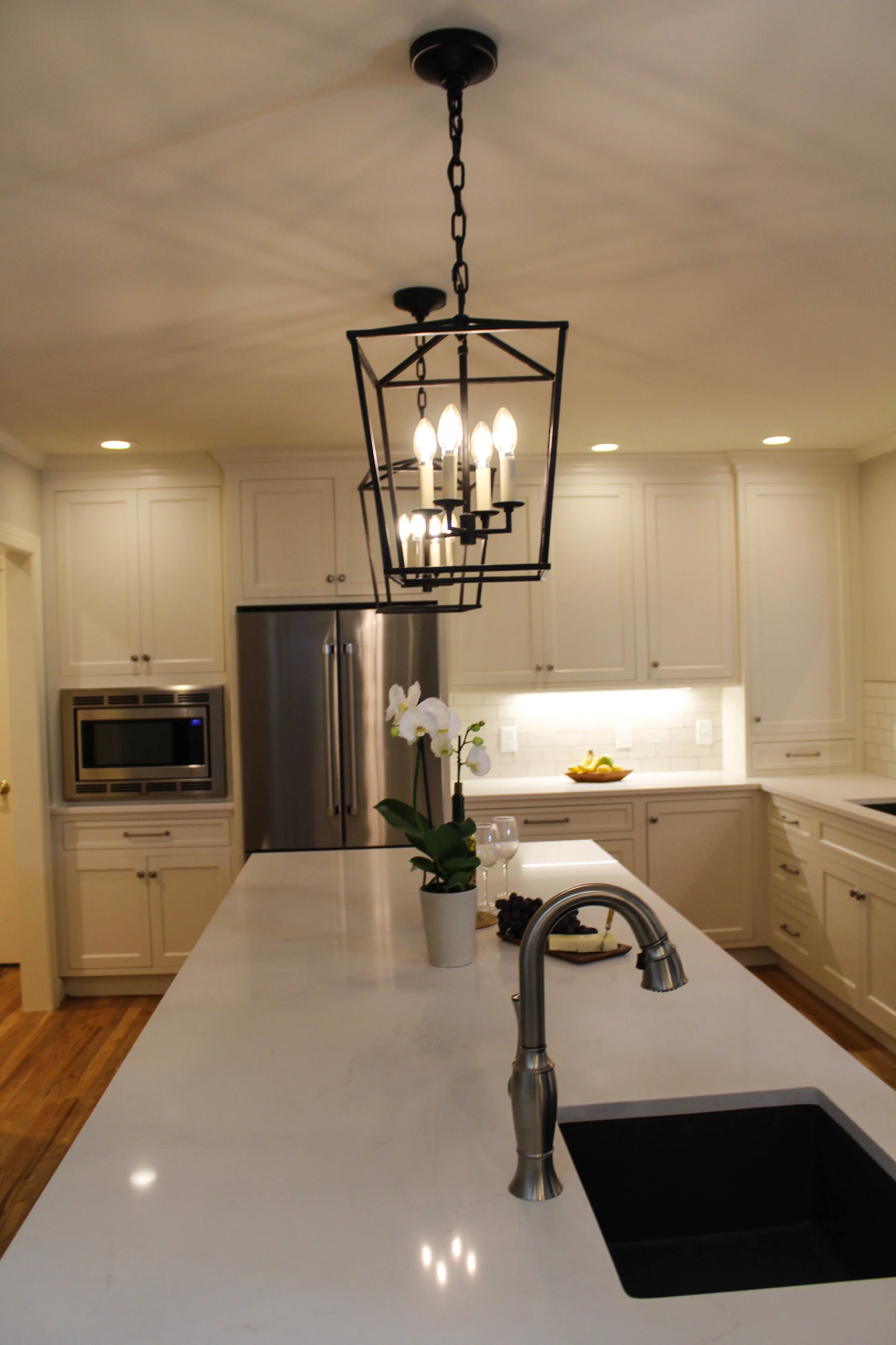 We did a complete renovation of the kitchen & master bath, converting part of the home to an open concept floor plan between the kitchen and dining room to bring in more natural light into the home to really brighten up the colors. We also installed handmade subway tiles for the kitchen back splash, as well as quartz counter-tops and an island with a sink in the kitchen and marble counter-top in the bathroom.