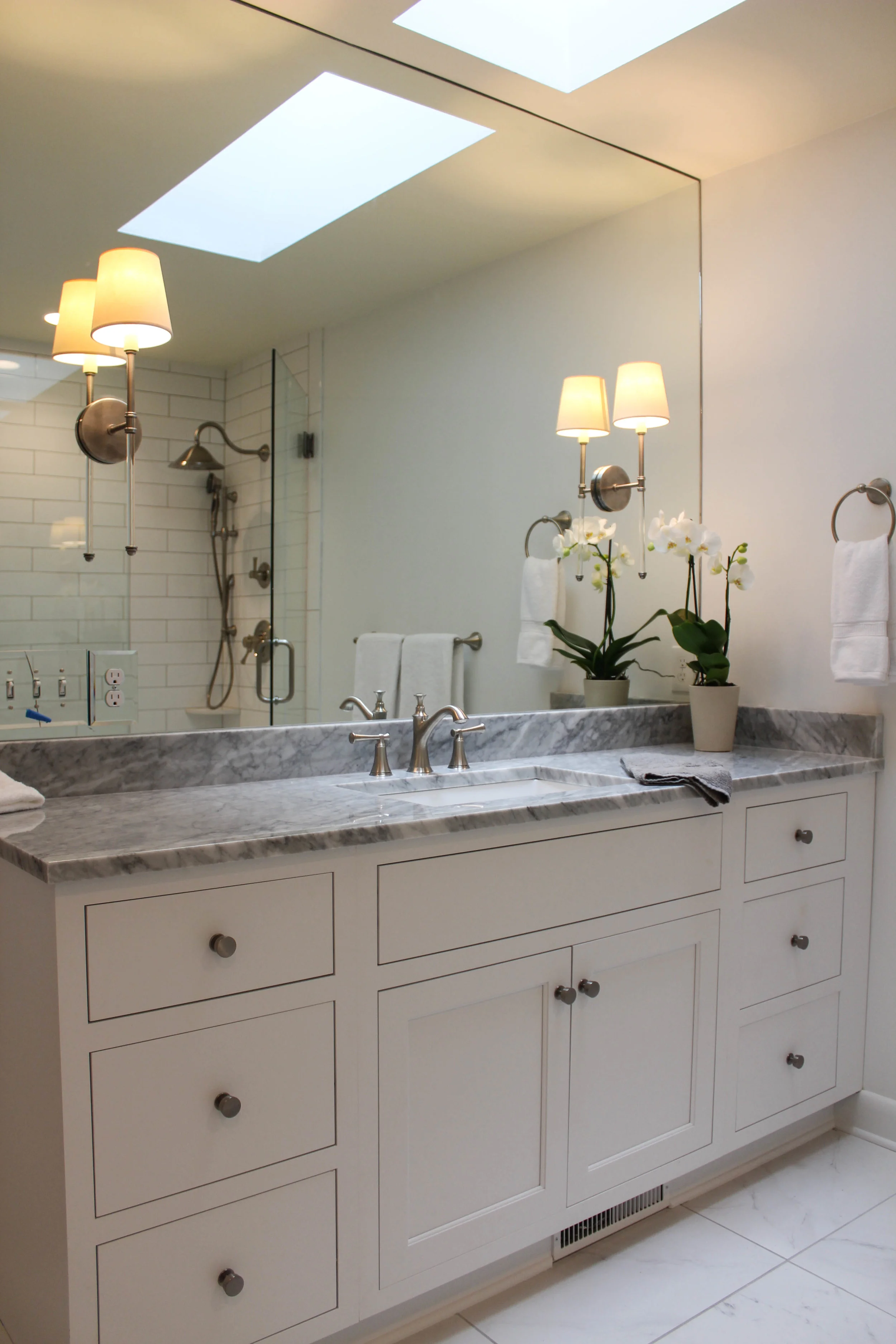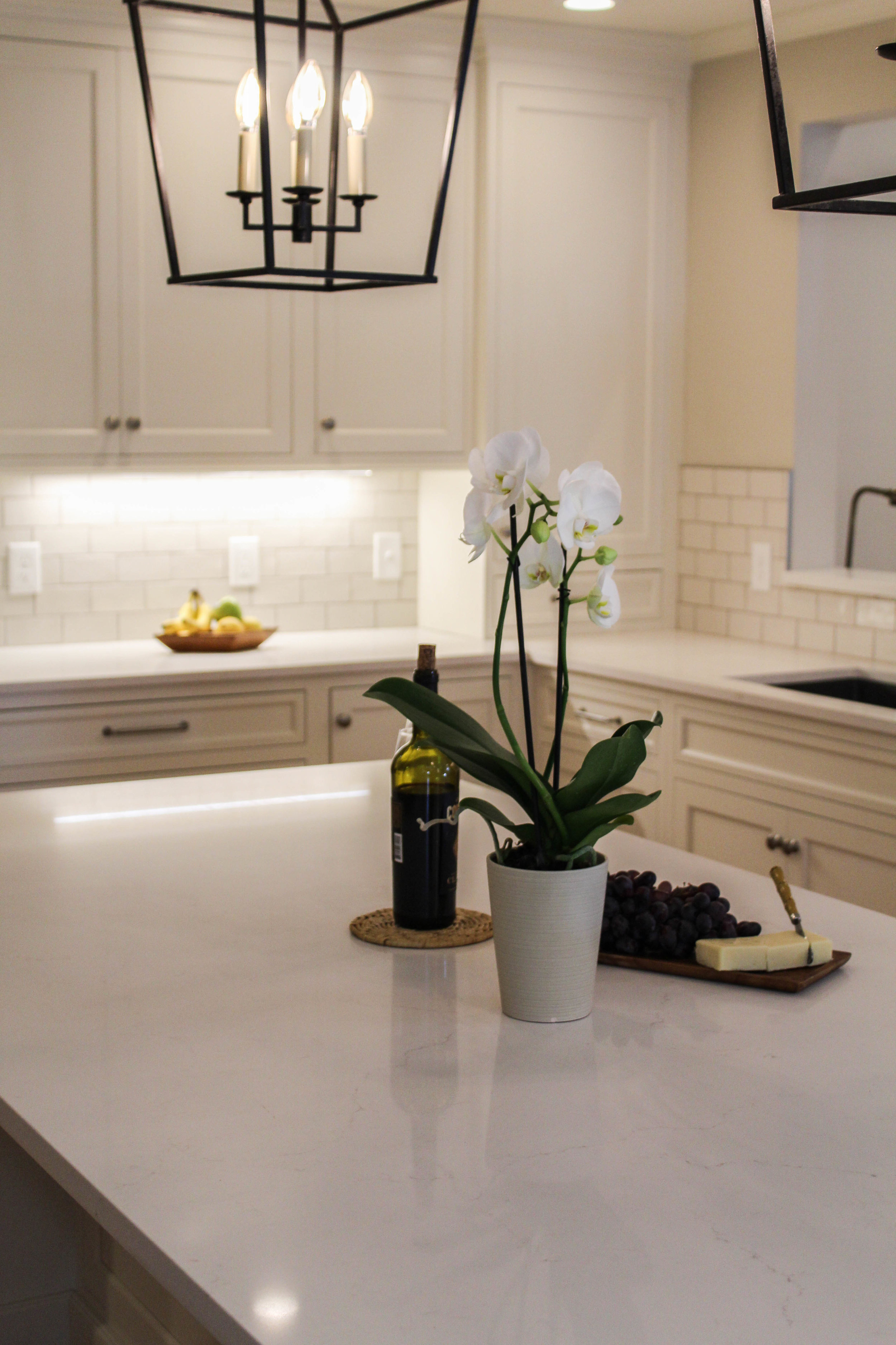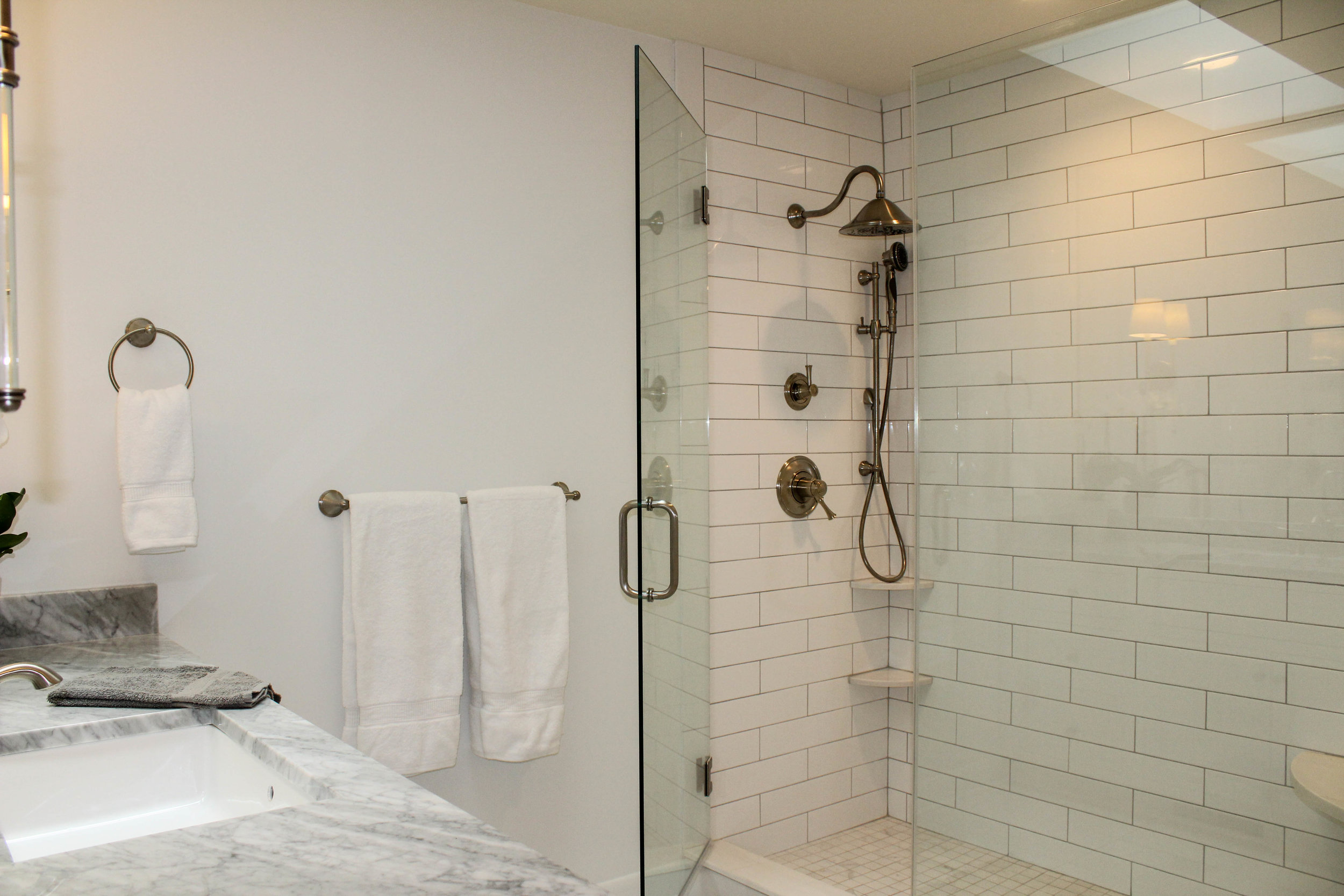 We did a complete renovation of the kitchen & master bath, converting part of the home to an open concept floor plan between the kitchen and dining room to bring in more natural light into the home to really brighten up the colors. We also installed handmade subway tiles for the kitchen back splash, as well as quartz counter-tops and an island with a sink in the kitchen and marble counter-top in the bathroom.